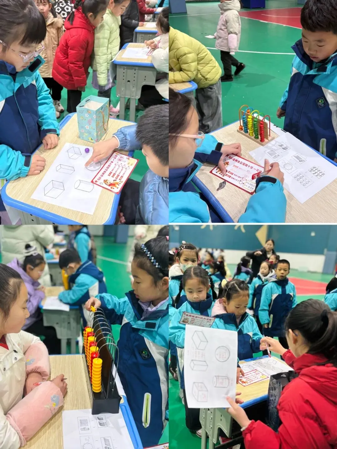 孩子们在计数器上灵活拨珠,准确表述数的组成;面对看图列式题目,快速理清数量关系完成作答;摸取立体图形的游戏中,不仅辨识图形特征,更锻炼了空间思维能力,真正实现“在玩中学,学以致用”。