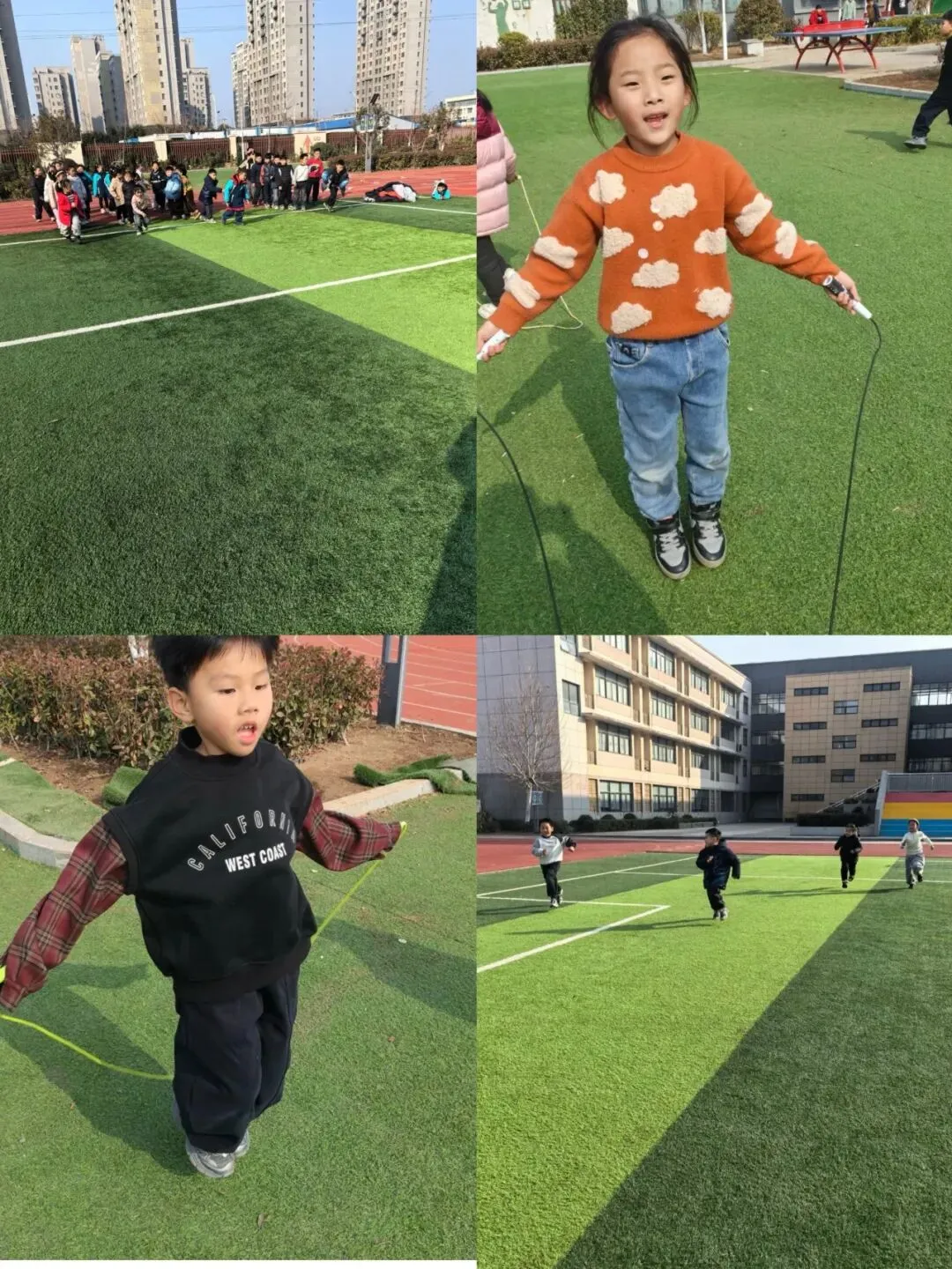 体育区的一分钟跳绳与接力跑充满活力,孩子们奋勇争先,展现出顽强的拼搏精神。