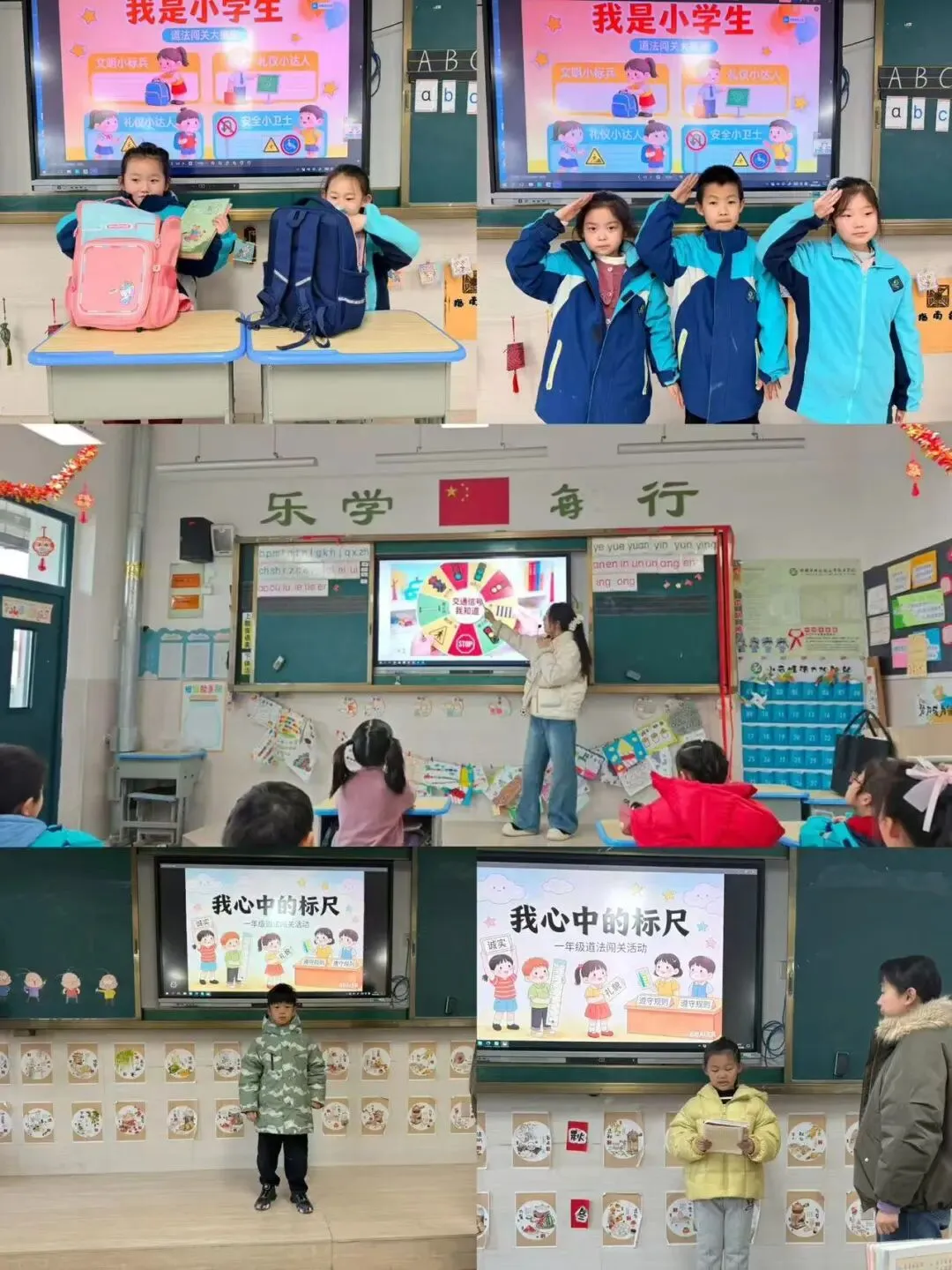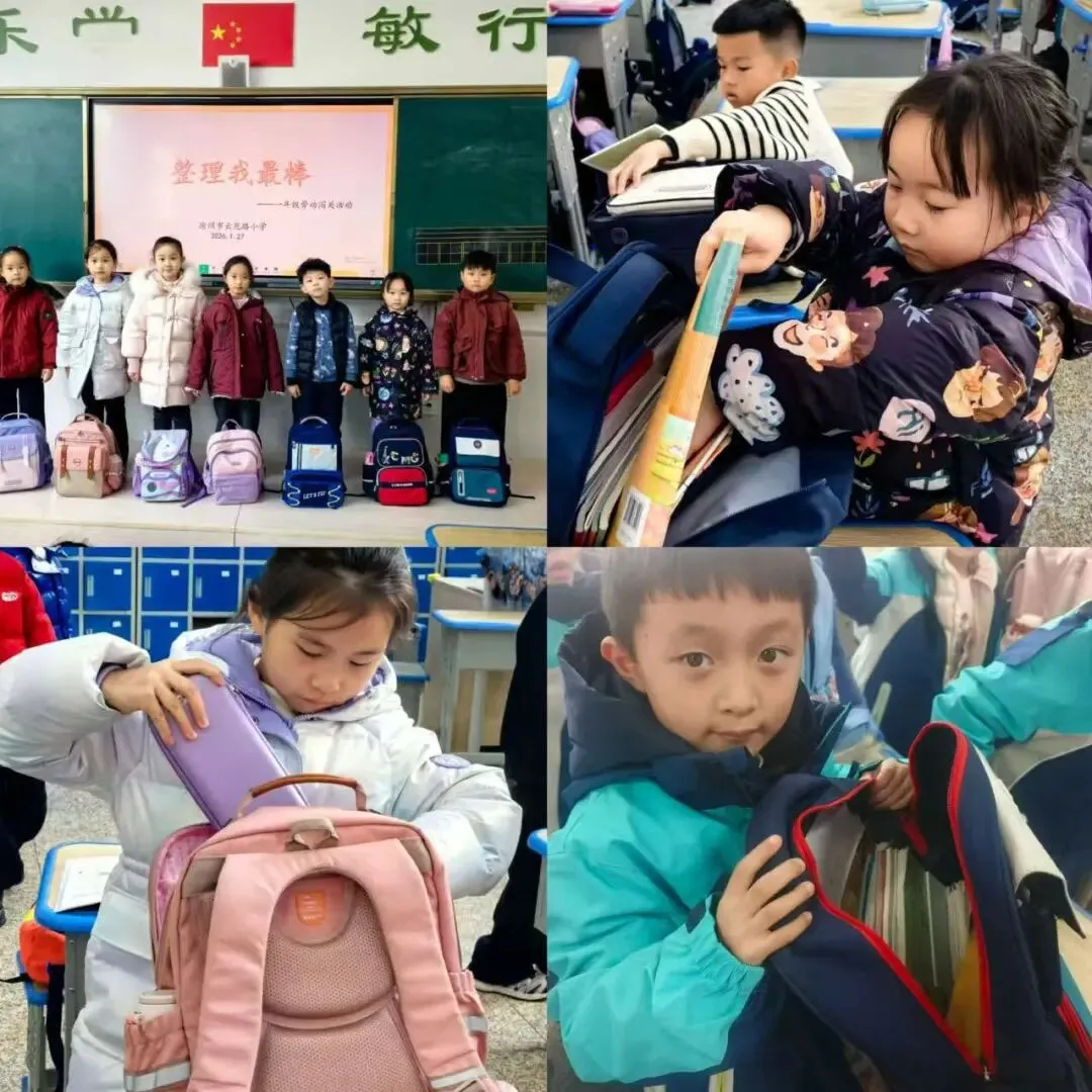综合实践与劳动闯关彰显生活气息。“我是生活小能手”环节,孩子们在30秒内将书本按大小排序、分类整理书包,动作麻利有序;“我是创意小达人”中,四巧板在孩子们手中变幻出多样图案,创意讲述充满童趣。