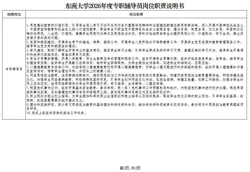 【南京招聘】 进编|东南大学2026年度专职辅导员招聘公告(26名)