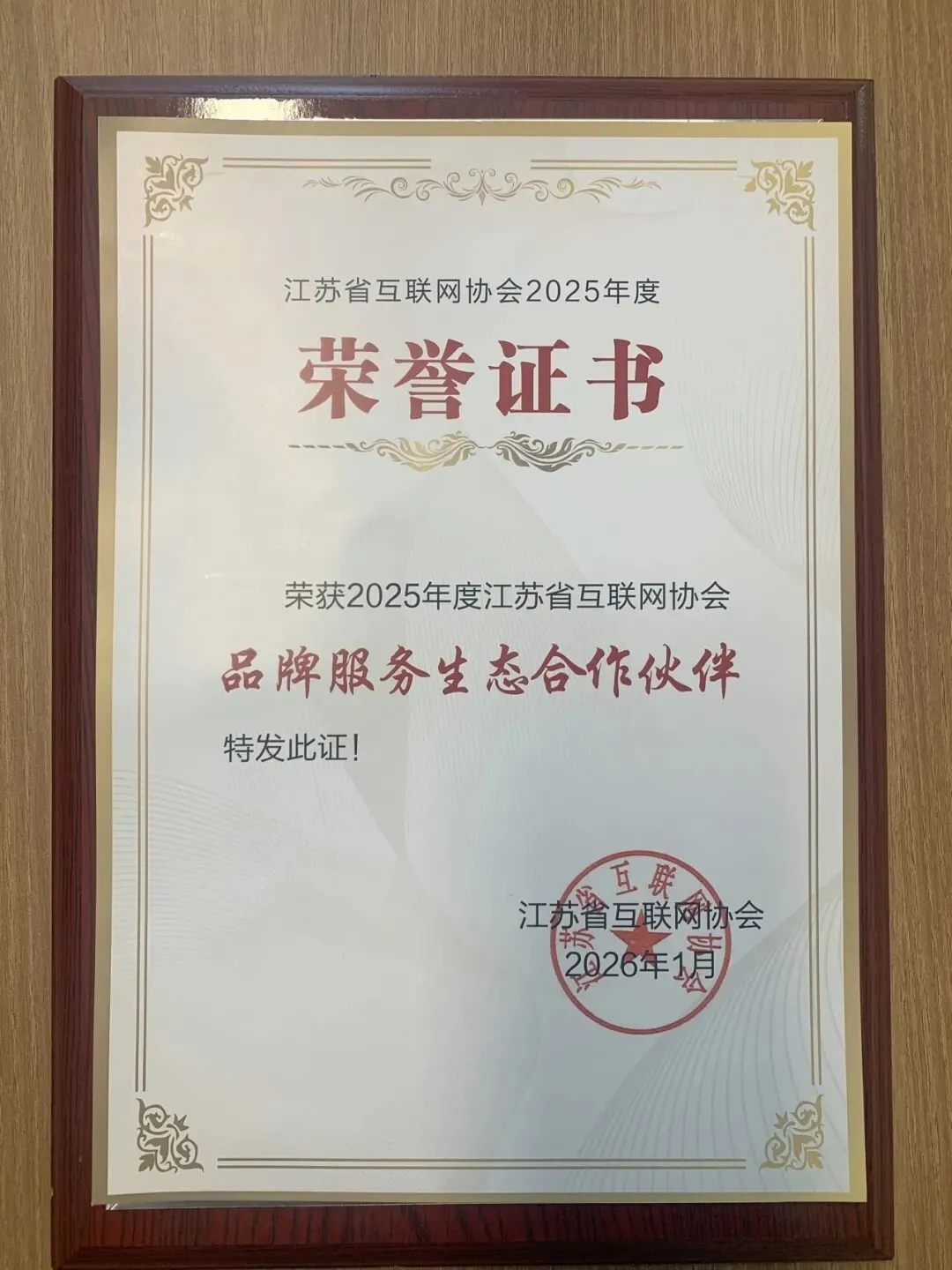 这份荣誉,是江苏省互联网协会对公司深耕行业、赋能生态的高度认可,更是对我们持续创新、践行责任的有力肯定,也标志着公司在品牌服务与生态合作领域迈上新台阶!