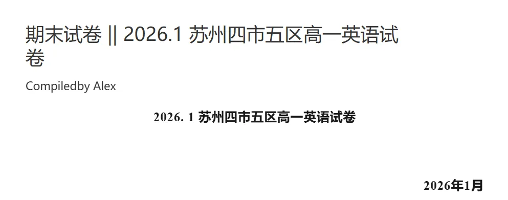 2026. 1 苏州四市五区高一英语试卷