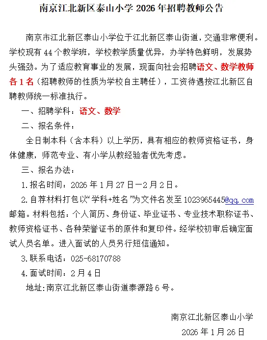 >南京市2所学校招聘教师公告