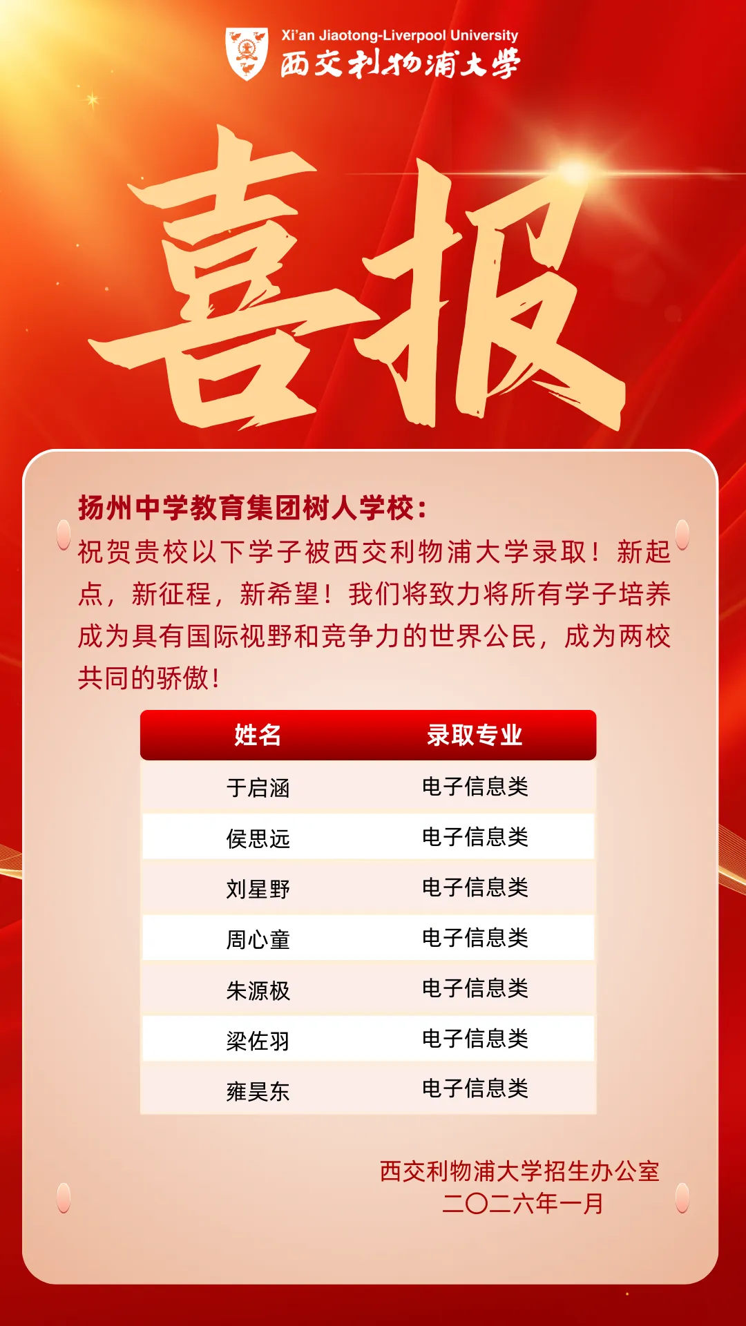 近日,西交利物浦大学向我校发来贺信。近年来,我校被西交利物浦大学录取的学生数逐年增加,生源质量也不断提高,为西交利物浦大学培养和造就高素质创新人才作出了贡献。