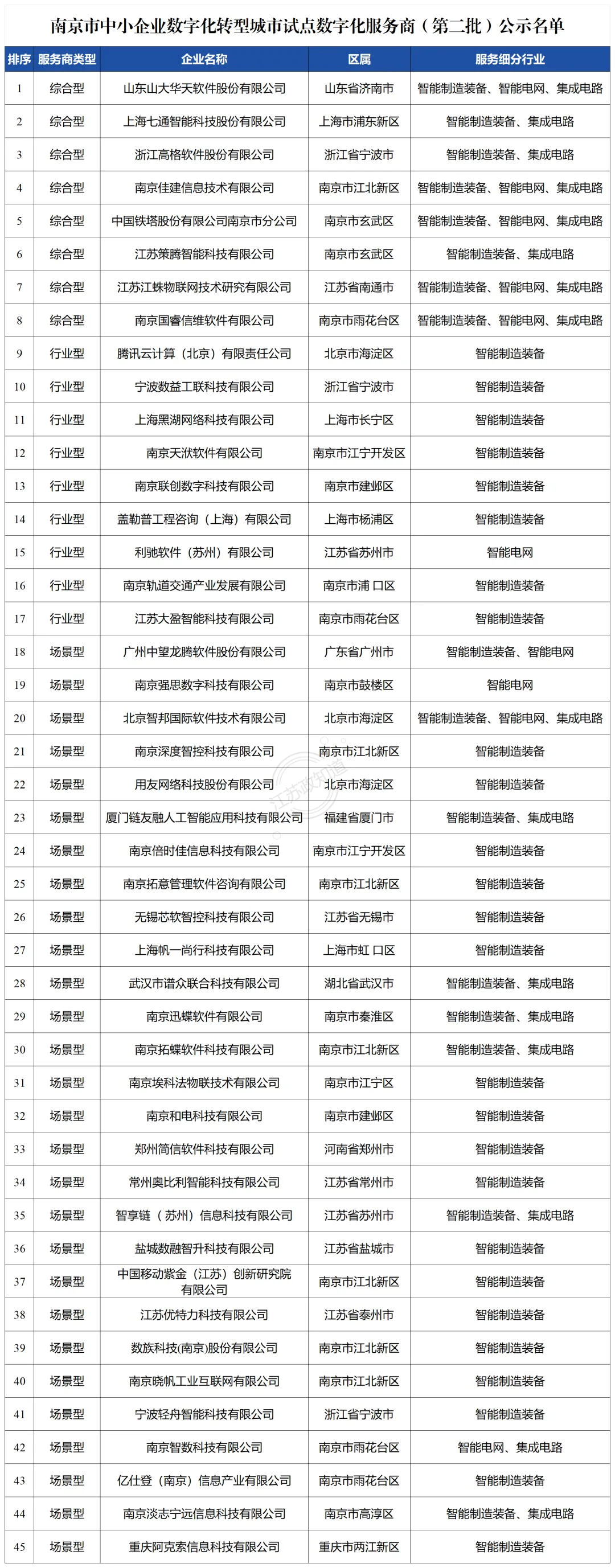 关于对南京市中小企业数字化转型城市试点数字化服务商(第二批)的公示