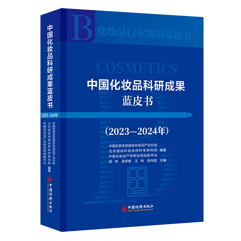 《中国化妆品科研成果蓝皮书(2023—2024 年)》由中国抗衰老促进会化妆品产业分会、北京国妆科创自然科学研究院以及中国化妆品产学研协同创新平台共同组织。全书580页,57.8万字ISBN978-7-5136-8011-0,中国经济出版出版。