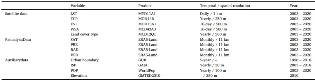 表1 本研究中使用数据的详细信息。