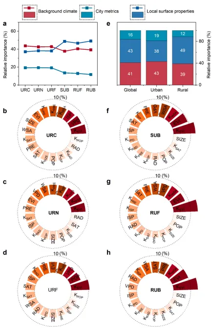 - 驱动机制:通过 LightGBM-SHAP 算法分析发现,宏观背景气候主导了城市地区的 CE 趋势(贡献率 43%),而微观局部地表属性则是乡村地区的主要贡献因素(贡献率 48%)。