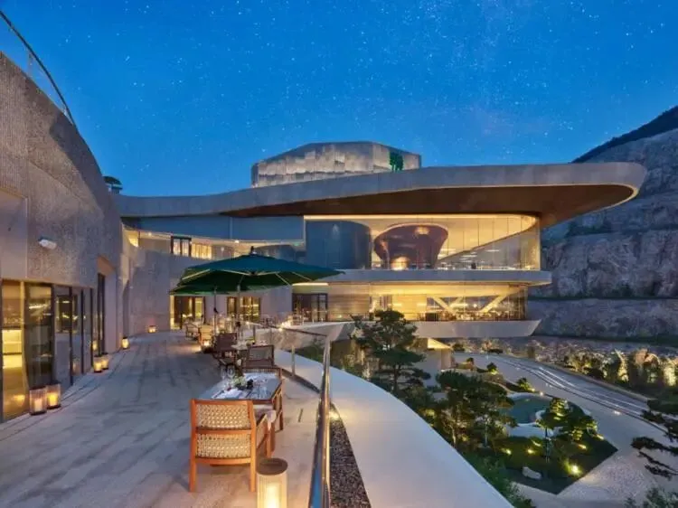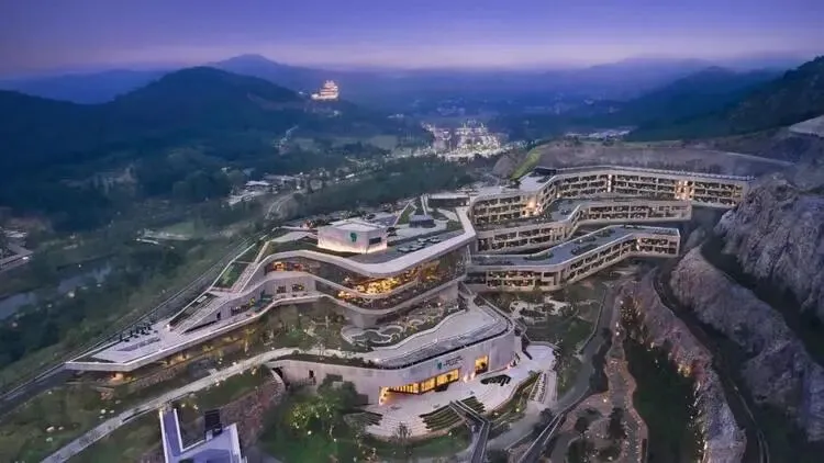 南京园博园悦榕庄的选址让我不得不服,是原汤山龙泉采石场所在地,现场留有曾因采石而形成的矿坑,看起来真的非常壮观。