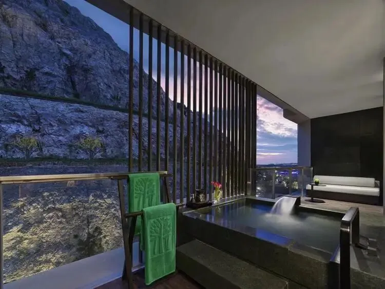 南京园博园悦榕庄不仅在每间房内设有私汤泡池,还在康体中心打造了室内外共计11个温泉泡池,引入的都是汤山温泉水。