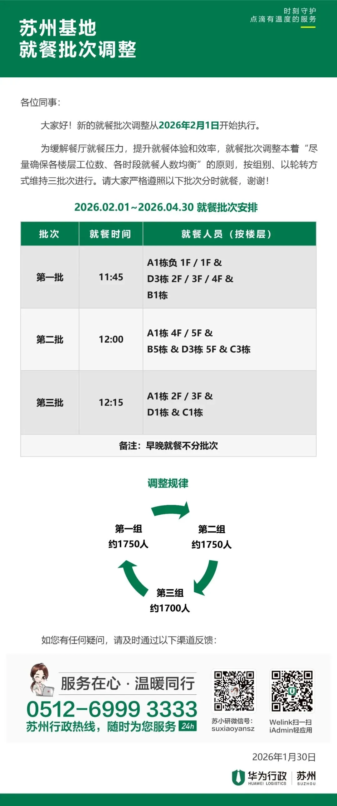 >重要提醒丨苏州基地就餐批次安排(2026.2.1-2026.4.30)