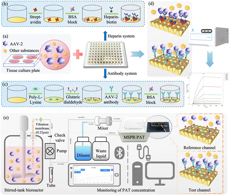 面对AAV工业生产中实时定量监测的迫切需求,研究团队设计并验证了基于醛基功能化的双捕获MetaSPR生物传感器,开发了两大核心检测平台(图1)。