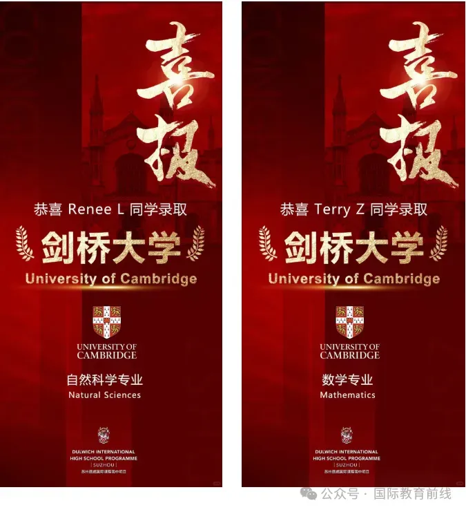 恭喜苏州德威收获2枚剑桥预录取,分别为自然科学和数学专业!