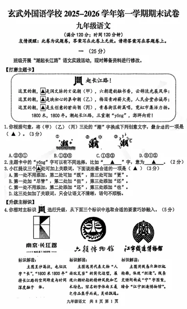 南京市玄武区外国语学校九年级期末试卷来了,新题型超乎你的想象,可以借鉴
