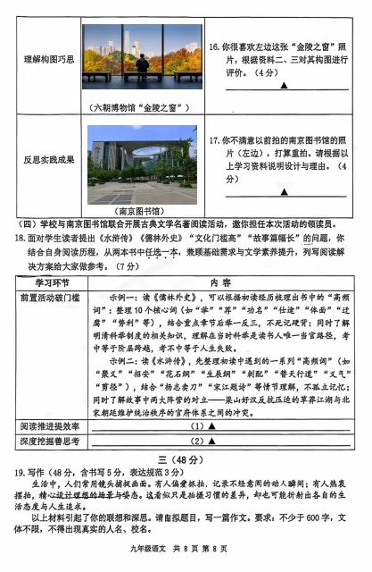 >南京市玄武区外国语学校九年级期末试卷来了,新题型超乎你的想象,可以借鉴