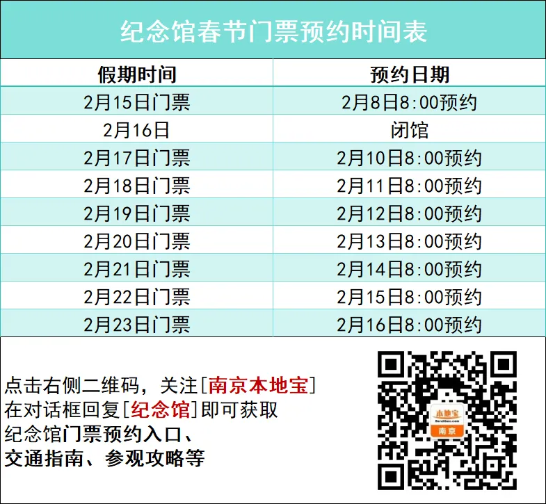 快捷预约入口:关注【南京本地宝】,后台对话框回复【纪念馆】即可获取快捷预约入口、预约攻略以及参观攻略;