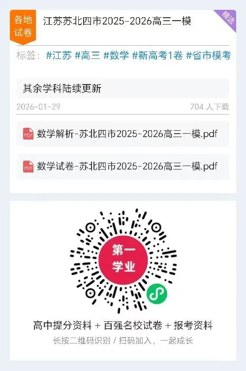9科全!2026届连云港、徐州、淮安、宿迁等四市一模(期末)地理+化学+生物+英语+政治+物理+历史+语文+数学试卷、答案、听力来了