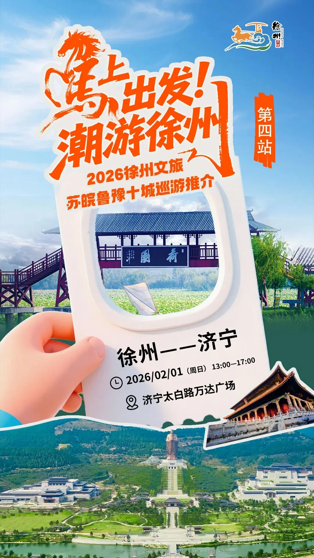 由徐州市文广旅局主办、联动徐州广电传媒集团的“马上出发 潮游徐州”2026徐州文旅苏皖鲁豫巡游推介活动,1月31日(周六)赴临沂之约,2月1日(周日)赴济宁之会。这场以“徐州文旅移动客厅”为核心定位的巡游盛宴,带着徐州的汉潮底蕴、民俗年味与满满福利,用“可移动、强互动、深体验”的沉浸式玩法,邀两地市民足不出城,解锁徐州文旅的独特魅力,提前点燃春节出游热情!本次巡游汇聚徐州各县(市、区)文旅企业、景区景点、特色美食及“暖冬三宝”等文旅特色产品,量身打造“一路潮游、一城一韵”的专属体验。
