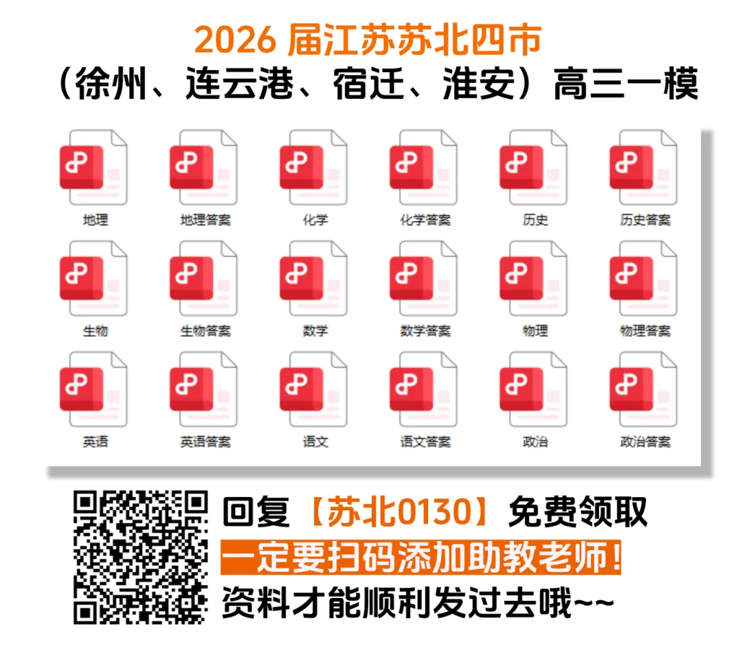 2026 届江苏苏北四市(徐州、连云港、宿迁、淮安)高三一模全科试题及答案。
