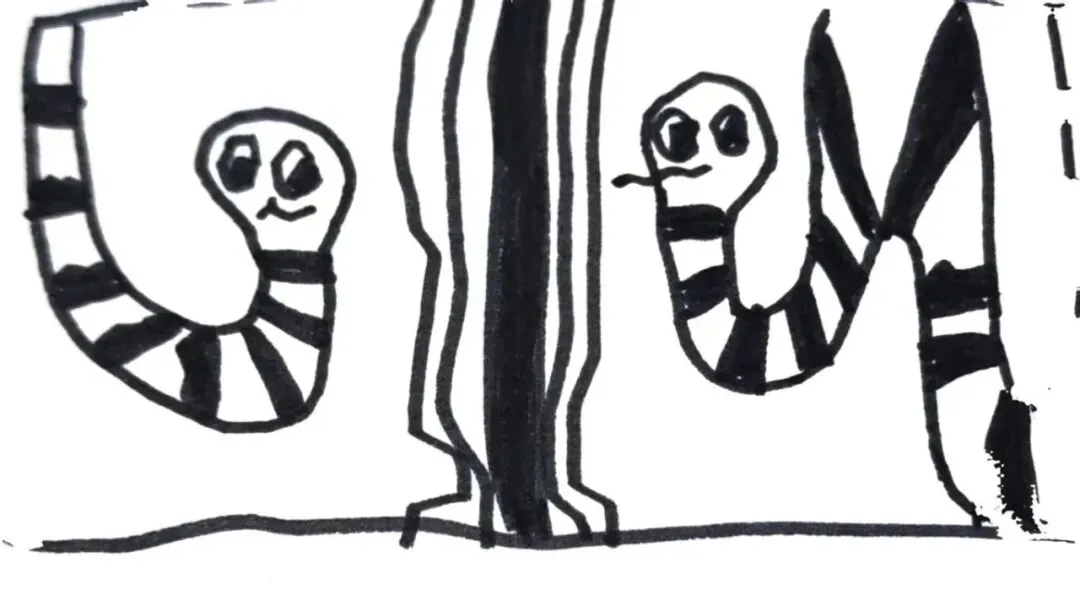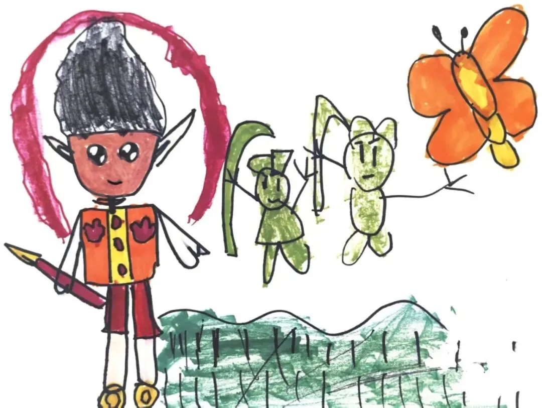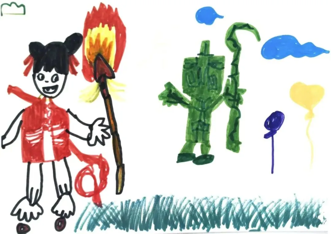 孩子们在讨论电影《哪吒》里的“结界兽”——“它们的眼睛好大,鼻子也大大的!身上都是绿色的......”孩子们兴奋地模仿着结界兽夸张的表情和对话。原来结界兽的原型来自三星堆和金沙遗址的青铜人像。