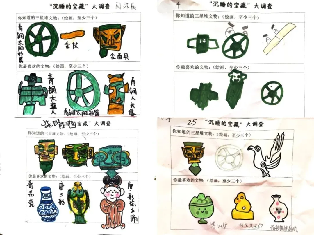教师思语:孩子们对那些文物的外观那么感兴趣,争先恐后地去想像与猜测,所以我们创造一个自由表达的环境,帮助孩子欣赏文物之美,在不同时空下,通过各种方式发挥想象力与文物互动,表达对文物的喜爱。