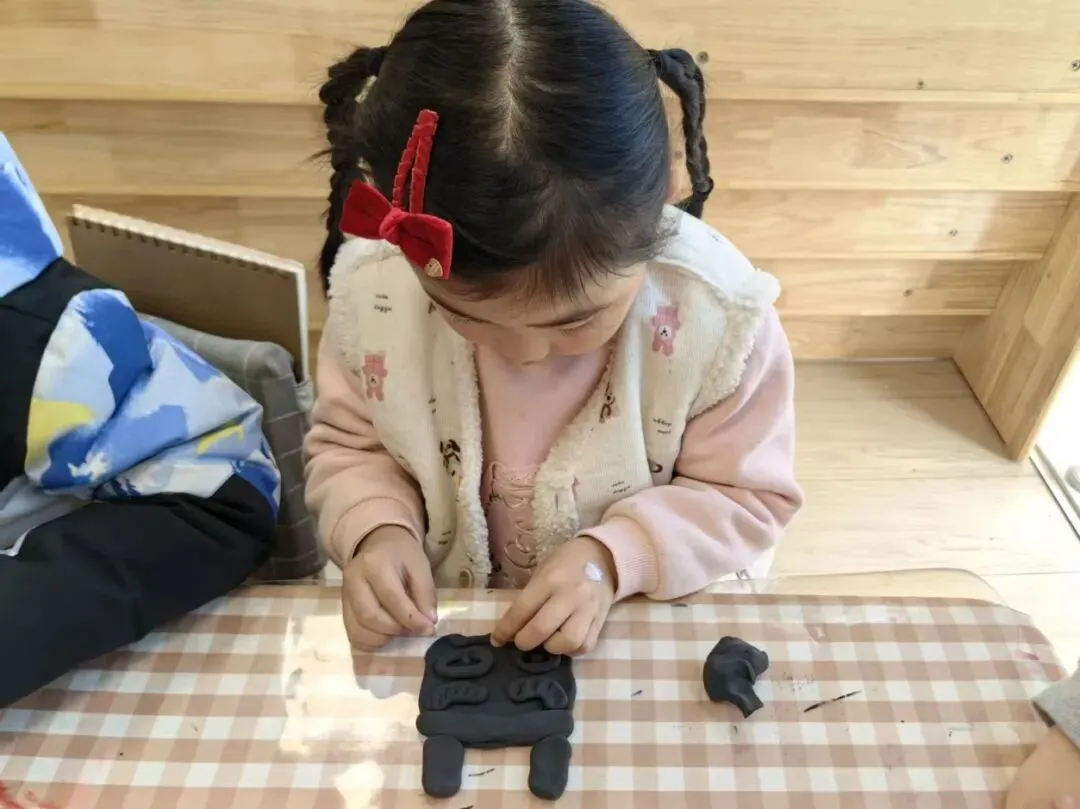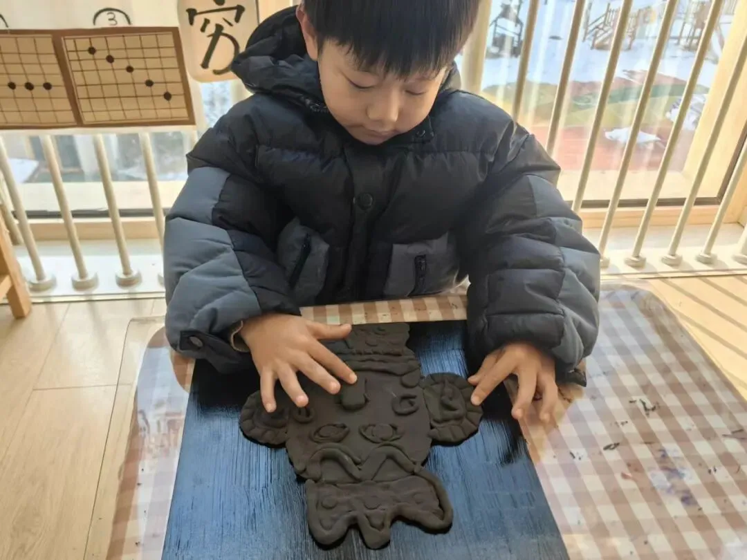 教师思语:结界兽,是哪吒魔童系列电影中,一对儿可爱讨喜的角色形象。结界兽形象创作借鉴了三星堆青铜器元素,塑造出独特的造型和鲜明的性格。从孩子的视角出发,挖掘课程内容,通过观察、游戏、艺术、建构等方式,让抽象的历史文物与孩子的生活经验产生联结,建立对历史文化的亲近感。