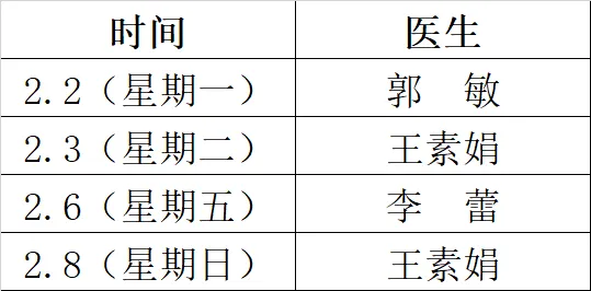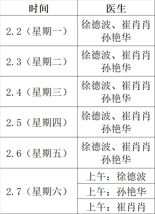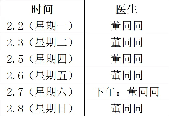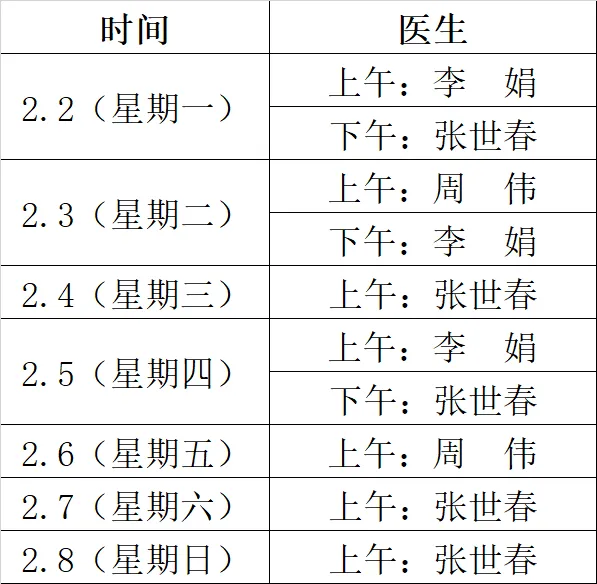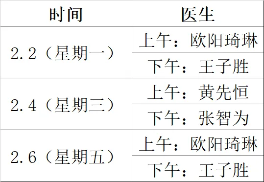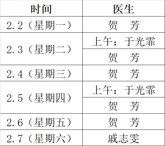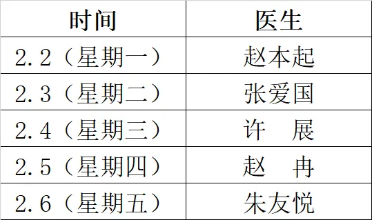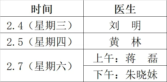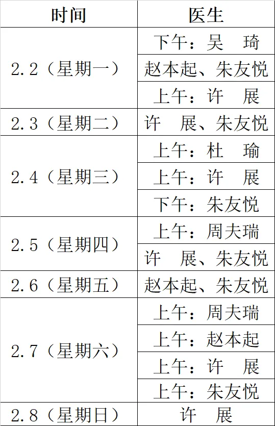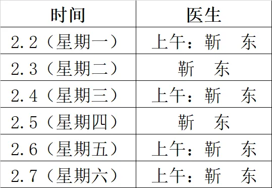 为了让您能够更便捷地获取优质医疗服务,我们特别为您整理了2026年2月2日至2月8日这一周的专家出诊信息。我们始终秉持着以患者为中心的服务理念,致力于为您的健康保驾护航,希望这份详细的坐诊安排能帮助您合理规划就医时间,让您在需要的时候能够及时得到专业的诊疗。祝您身体健康!