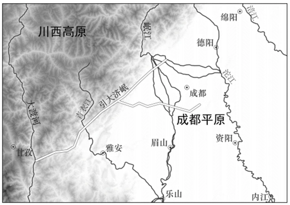 2025年11月7日,引大(大渡河)济岷(岷江)工程正式启动建设,该工程通过260余公里的隧洞(占总长度58%)和管线等设施将大渡河水引至成都平原,下图为引大济岷工程线路图。据此完成下面小题。