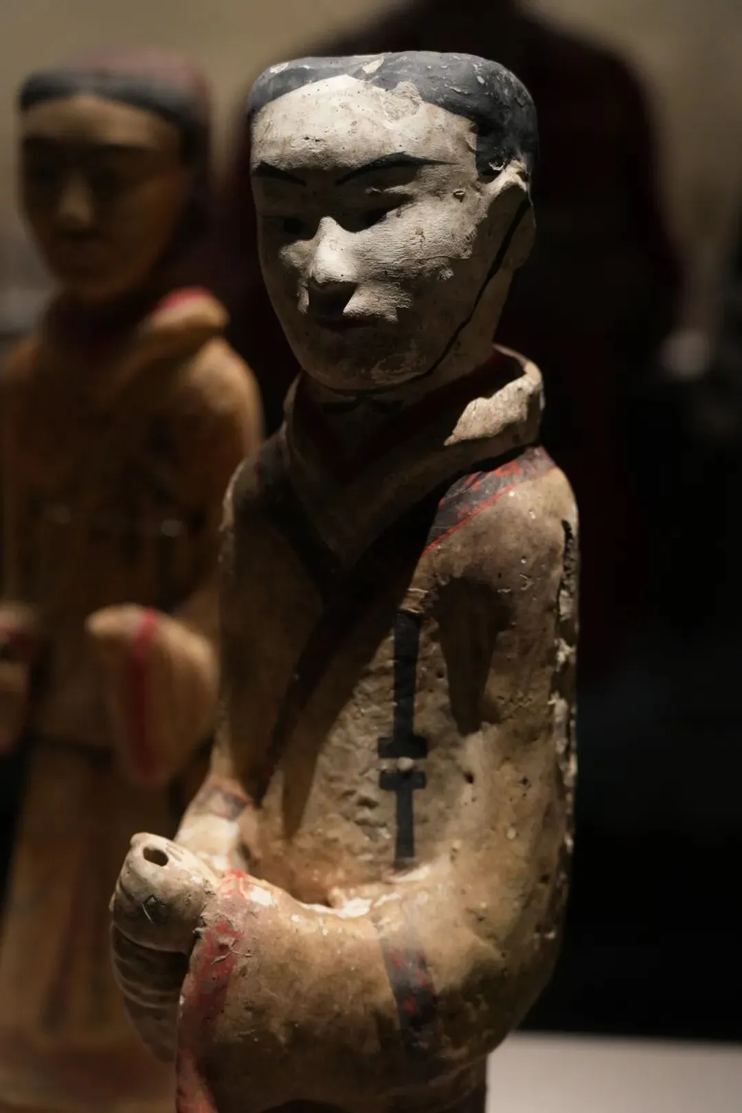上图:宴饮图 右上角的小人正在烹饪食物,看上去像是在烤羊肉串 同样令人过目难忘的,还有一支「写意」的军团汉兵马俑。徐州有着目前规模最大、保存最完整的汉代兵俑群,不同于秦俑的威严写实,展现出写意与传神之美。走进徐州博物馆,无论是军阵庞大、造型古朴的狮子山兵马俑,还是色彩明艳、神态逼真的北洞山仪卫俑,都展现出汉代追求神韵、不拘泥形似的审美取向。