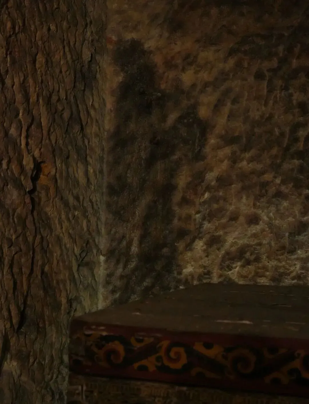 下图:龟山汉墓 墙壁渗出的水渍形似人影 被戏称为楚王迎客 图源/金晚