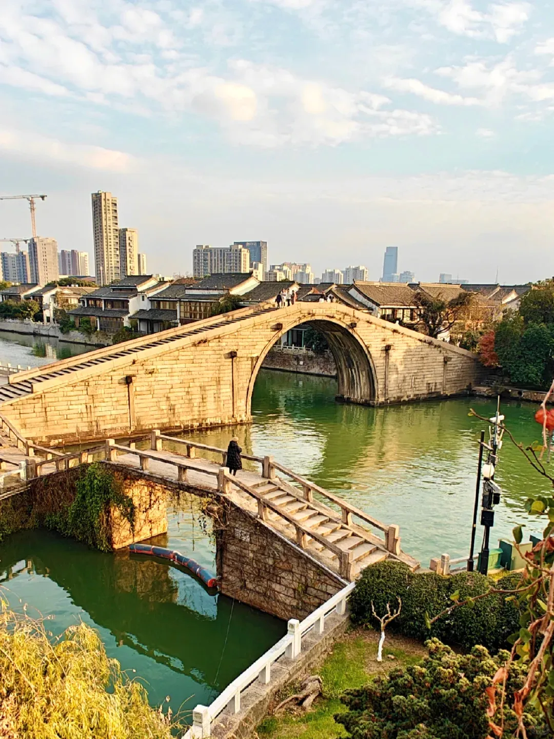站在盘门城墙上看吴门桥,桥洞下流水千年不息。从三国东吴的赤乌年间,到北宋的景德时期,再到今天的苏州,每个时代都在这里留下了痕迹。
