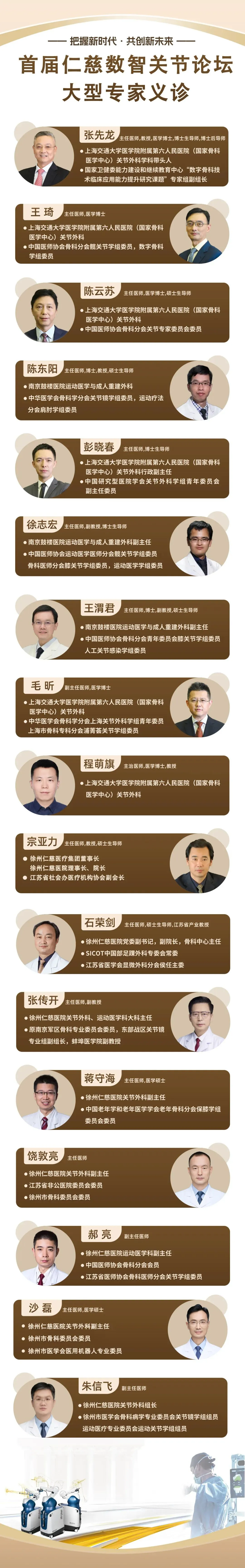 作为苏皖鲁豫省际交界地区关节外科的重要力量,徐州仁慈医院不仅拥有成熟的关节疾病诊疗体系,更持续引进智能微创技术,帮助众多患者重回行走自如的生活。此次携手国内顶尖专家,正是要让“优质医疗资源落地”成为实实在在的就医便利。
