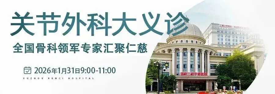 1月31日(周六),来自上海六院国家骨科医学中心、南京鼓楼医院、徐州仁慈医院等的关节外科权威专家,将齐聚徐州,开展一场面向髋、膝关节问题的暖心公益义诊。