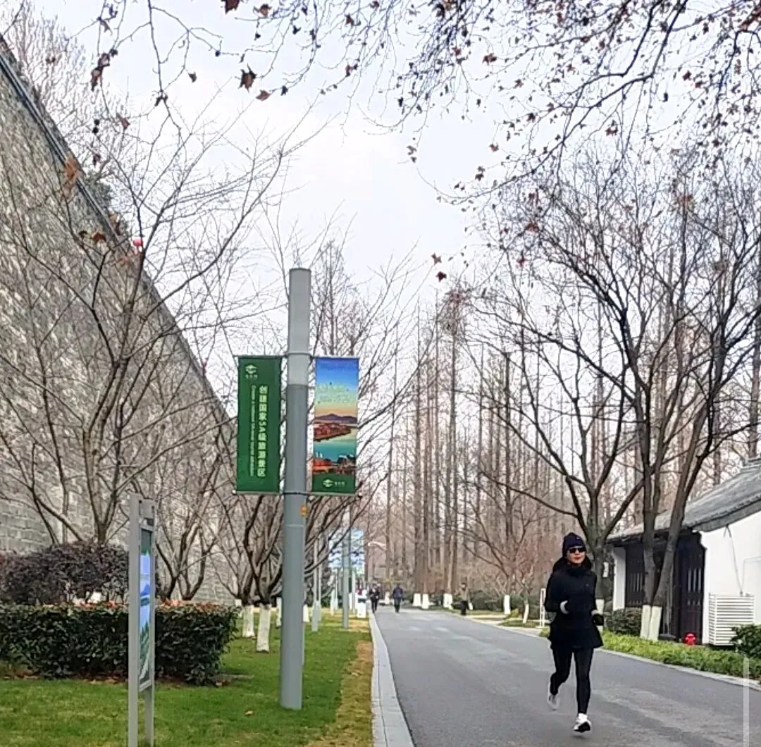 喜欢跑步的人,到哪里都想跑一跑。早有绕玄武湖跑一圈的念头,今天恰是时机。在火车上已换好跑鞋,套一件短款薄羽绒,存好行李,开启手表,就这样跑了起来。
