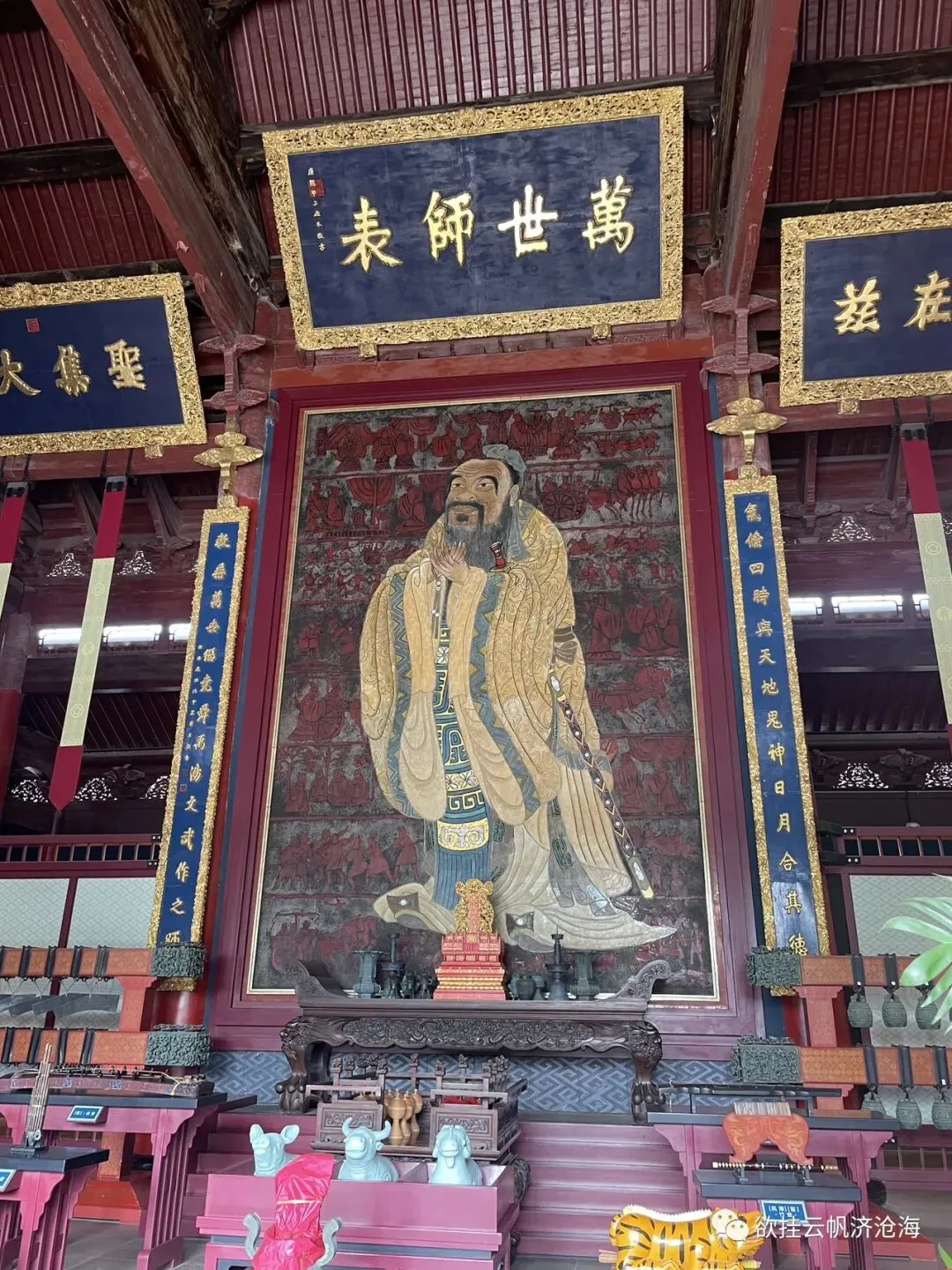 大成殿左右都是碑廊,右面有块祝枝山的墨宝“欲挂云帆济沧海”深得我心(不客气就拿来用了),其它都粗略看看,没耐心深入研究。