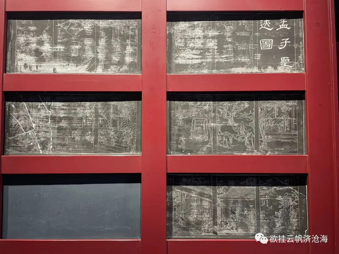 大成殿外面看看没什么感觉,进门一看,一幅孔子的巨幅画像,比较气派。上面康熙御书“万世师表”。右壁是光绪时复刻七十二圣贤图,当代复刻孔子圣迹图和孟子圣迹图等,就像连环画,画工精细。背面有一幅苏州府学图,左壁清同治复刻论语、大学等等。没想到里面可看的东西颇多,不枉我来一趟。