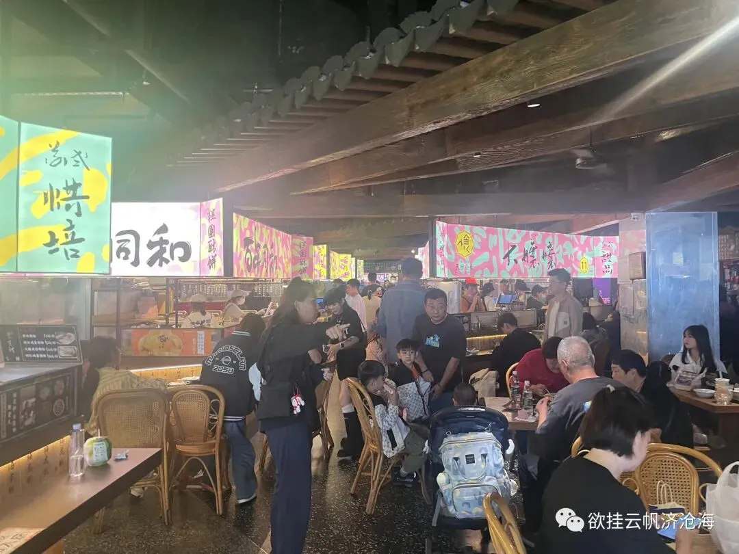 往前过了桥就是双塔市集,网红菜场,门口几张桌子,人都坐满了在那吃,桌上一片狼籍。进了集市就像到了一个综合体的美食广场,没有一张台子是空的,一个个铺位生意红火,空间不高有压抑感。本来再想解解馋,看这阵势就算了。