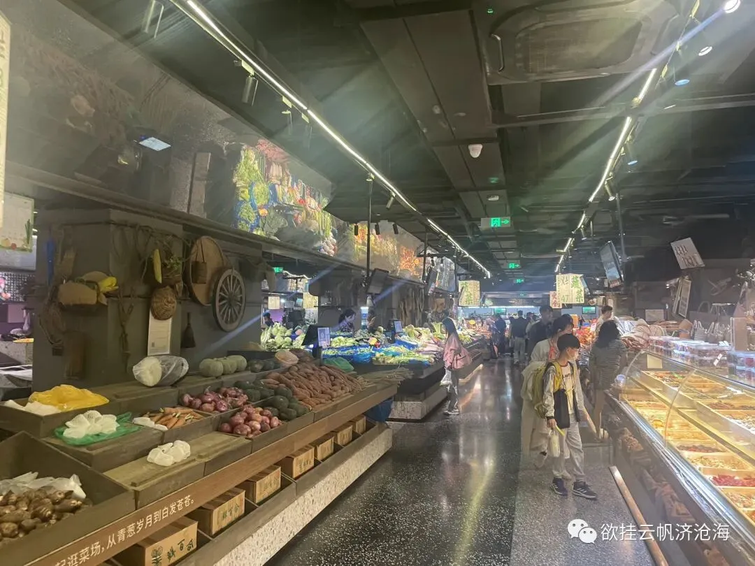 往里走过个隔断就是菜场,里面人不多,菜摊也不多,有些是文创和水果之类,基本没人买菜,感觉菜摊就是点缀品。都不应该收他们摊位费。