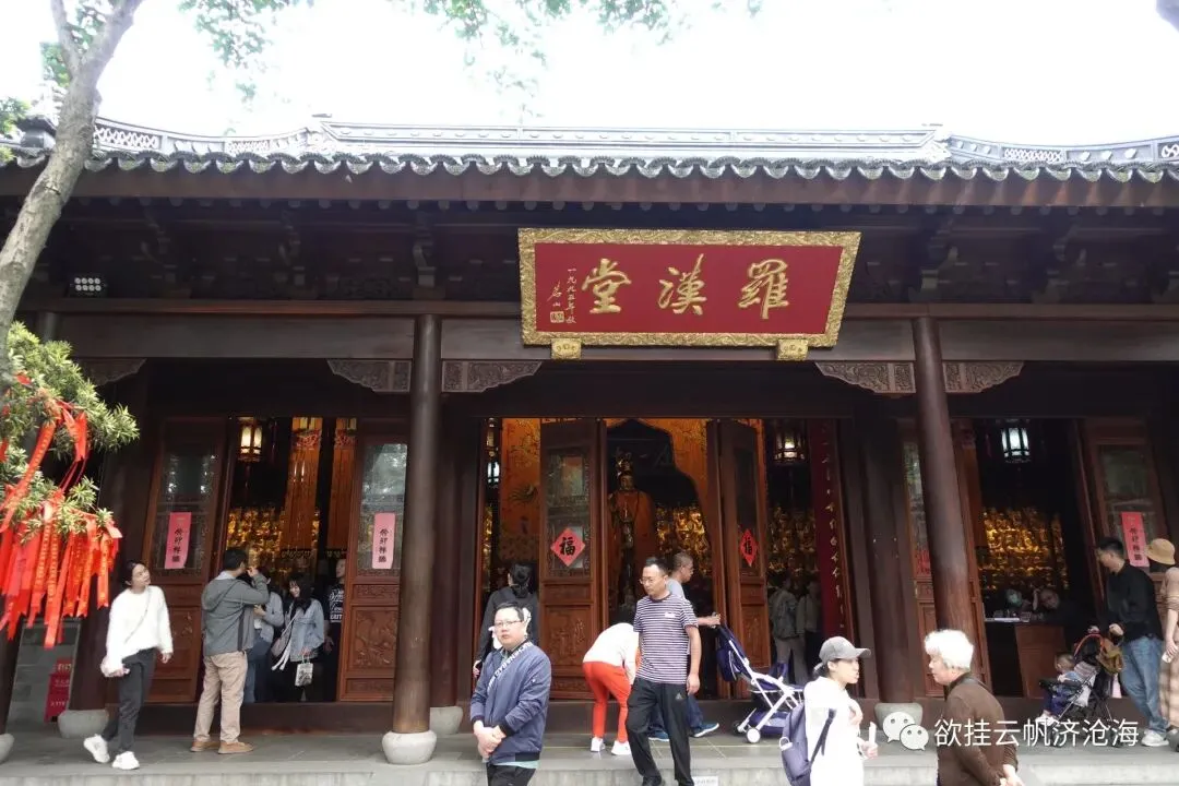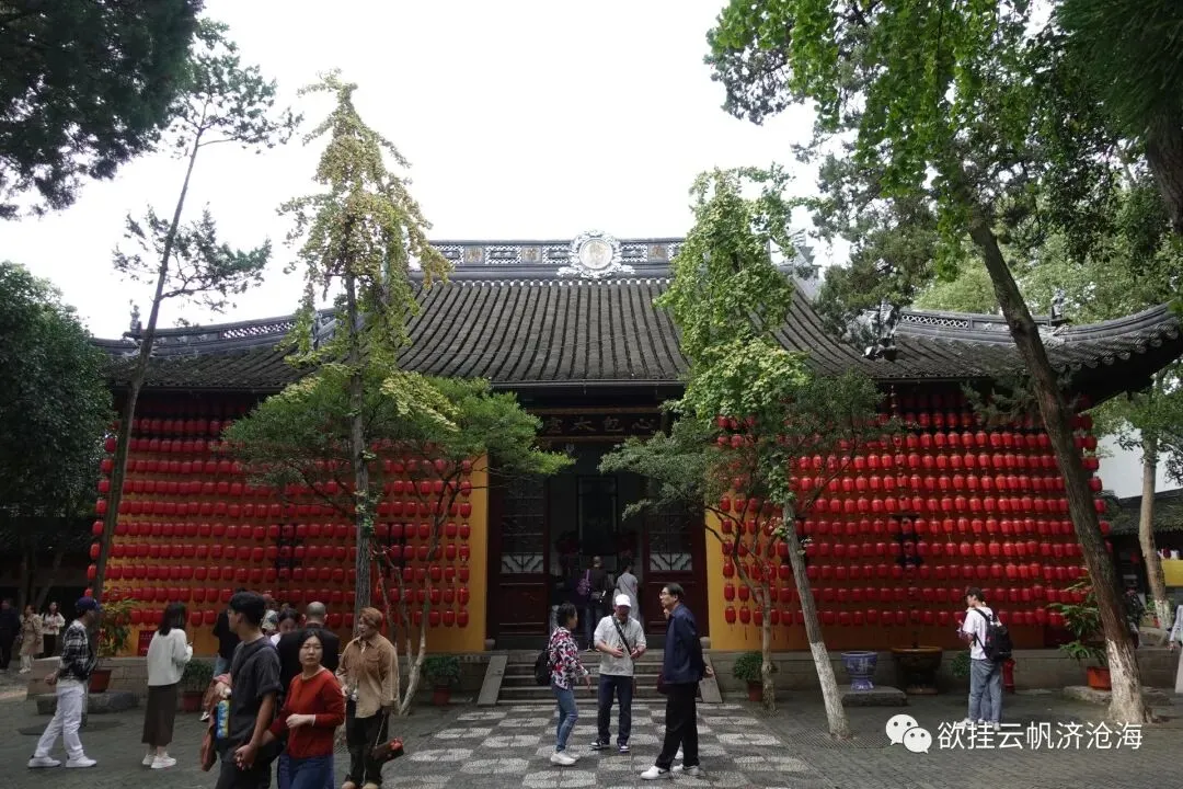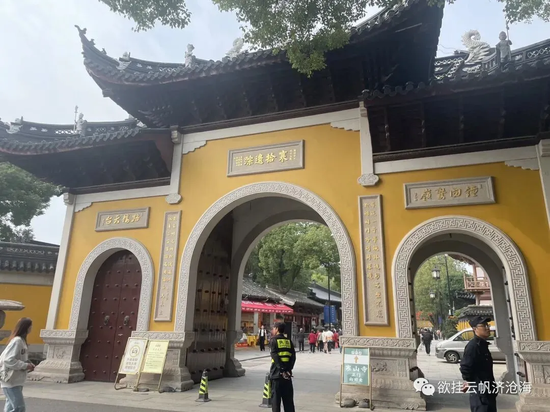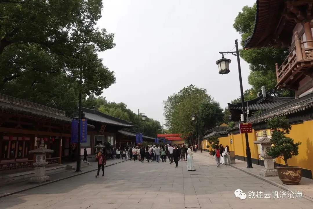 再过两站,我们就到站了。走入寒山寺寺外的牌楼,左手边是寒山别院 ,里面有两个世界第一,一钟一碑,体现了国人喜欢勇攀高峰的精神,不求上进的我就不去长见识了。往寺门走去,沿路都是一家家法物流通处,整条路上人来人往。