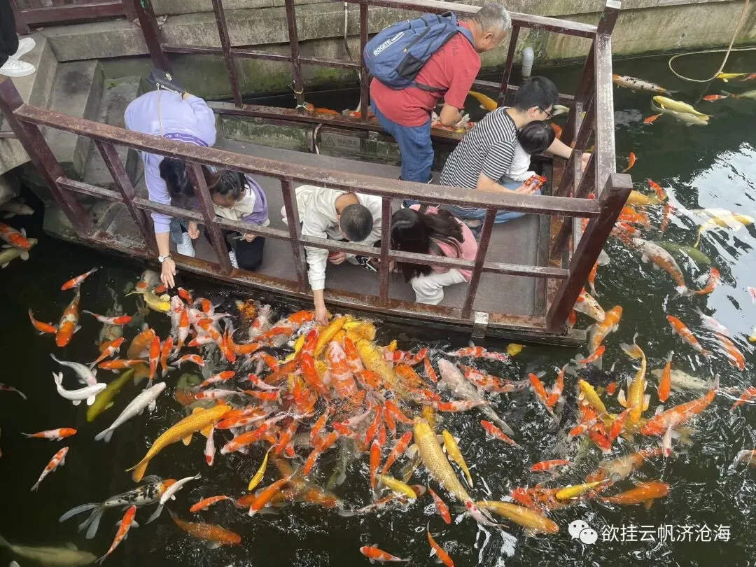 法堂门口一个平台,建于水池之上,看上去有点借鉴了鱼沼飞梁的设计。下面水池养了一堆锦鲤。买饲料就能下去喂,上面看的人也挤一圈。那个鱼就像饿的久了 ,拼了命的挤来挤去,看上去这个鱼生也没什么快乐可言。