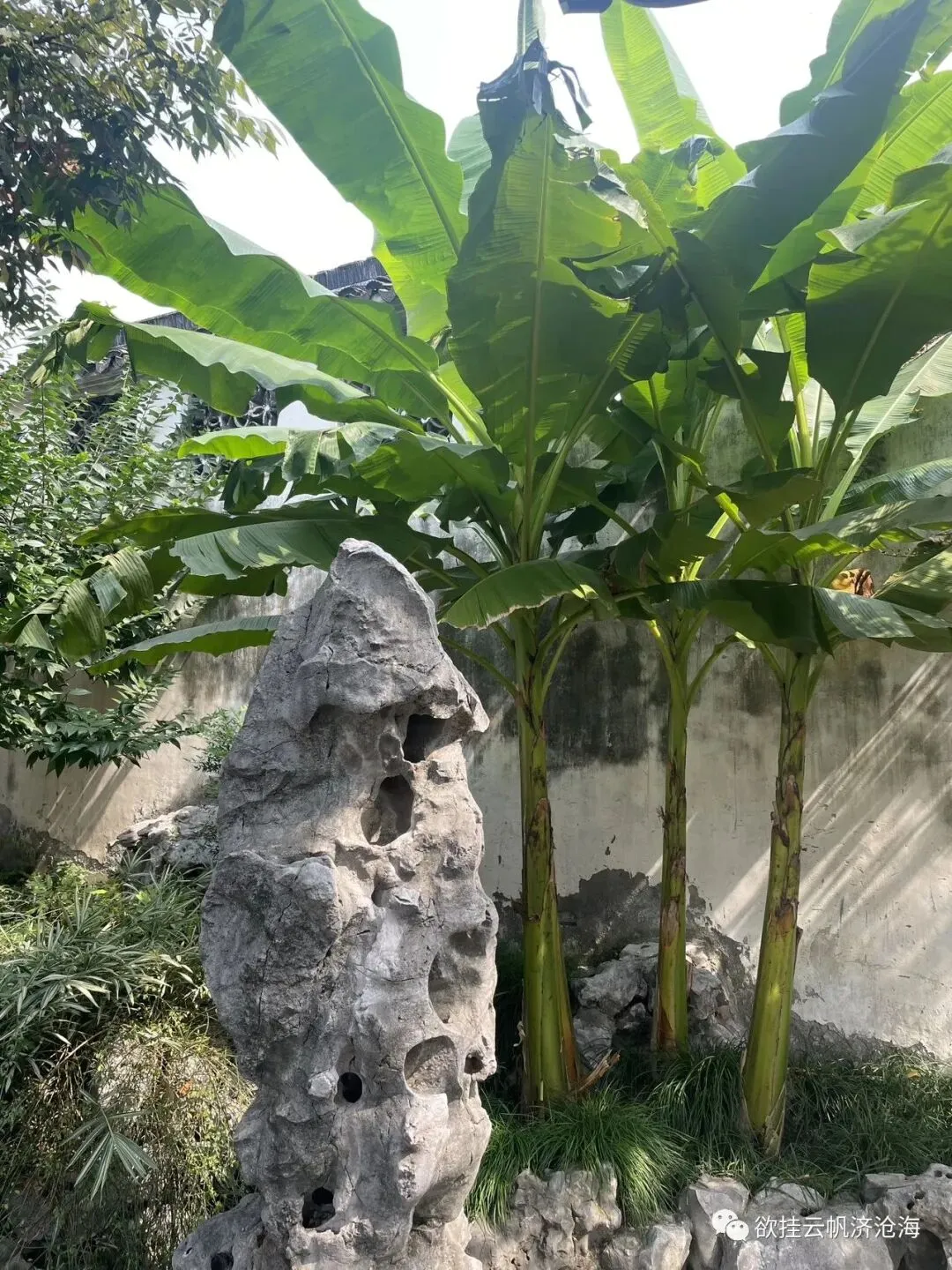 最后面是补秋舫,右手墙边种了几棵芭蕉,队友说寓意家大业大。舫后有条小路至问泉亭,也有座小假山,上上下下别有一番风味,由此看来前面的假山也不会太逊色。