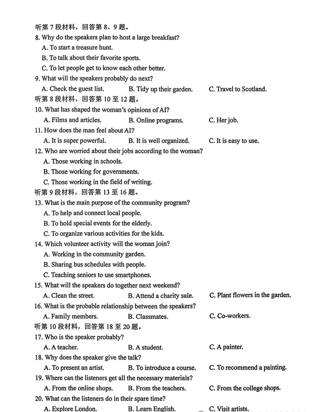 2026苏北四市一模英语试卷(徐州宿迁淮安连云港)+答案(2026.1.29)