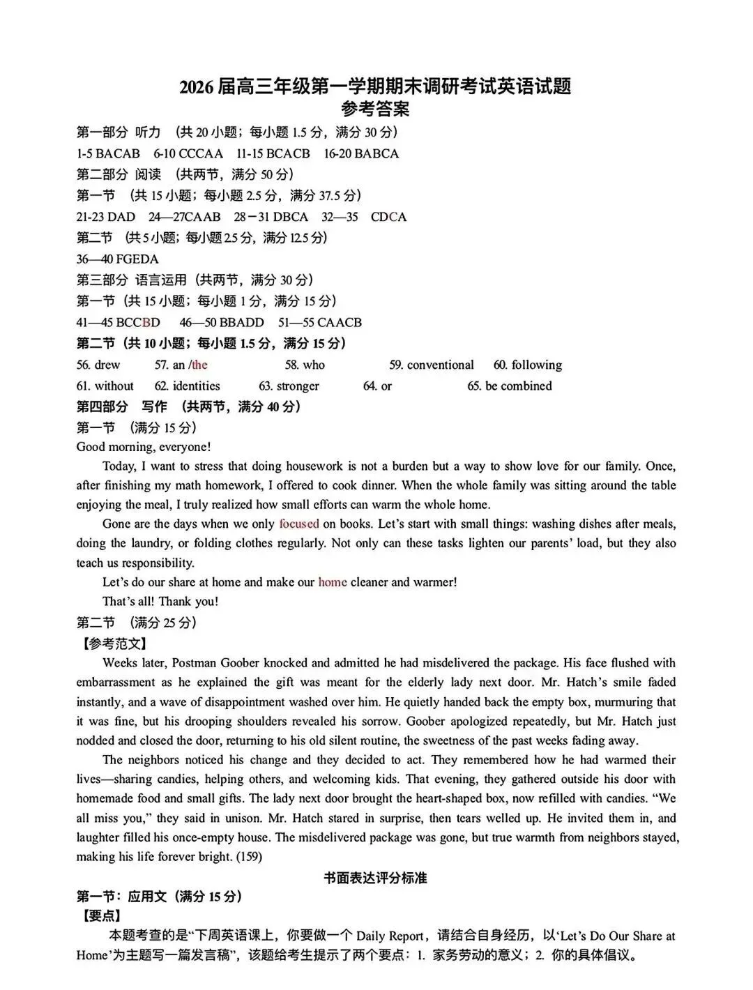 答案出炉!苏北四市高三联考英语试卷2026苏北四市(徐州、宿迁、淮安、连云港)