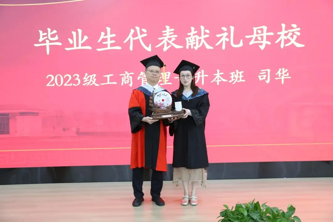 李昆代表学院接受毕业生献礼,并寄语2025届毕业生,希望大家养成终身学习习惯,以应对新挑战;秉持笃行实干态度,踏实创造美好;传承南审精神,牢记经济卫士使命,在正道上勇毅前行。愿大家带着学校赋予的知识与精神,在未来的人生道路上一帆风顺,收获属于自己的辉煌。