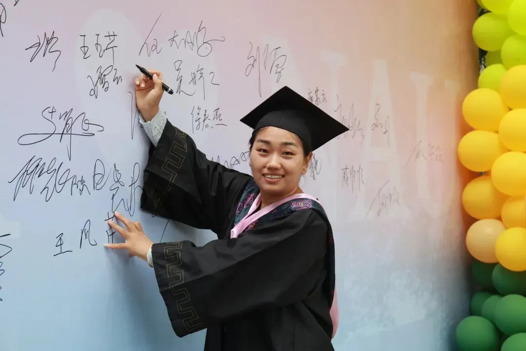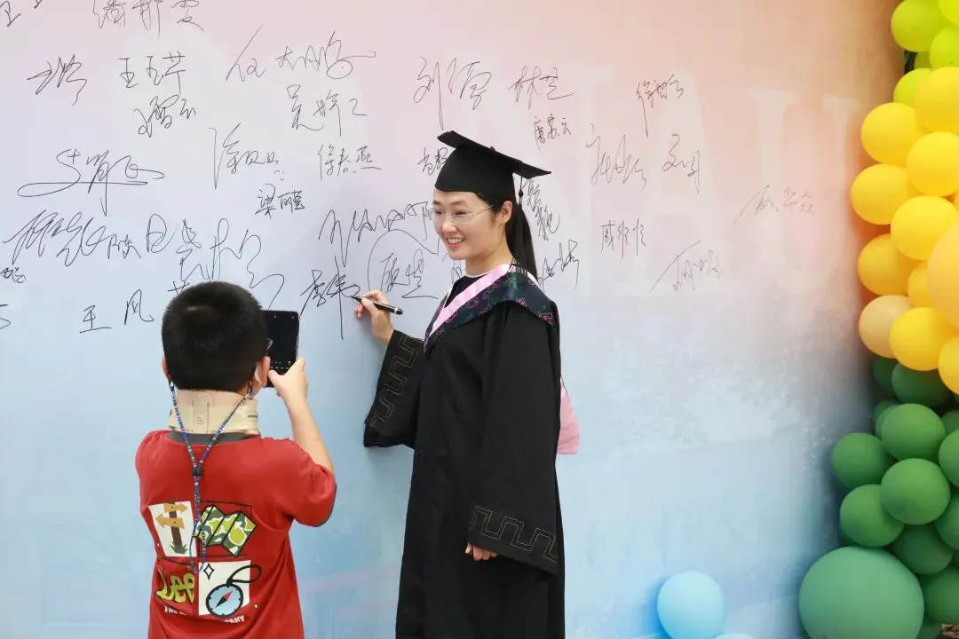 在典礼结束后,大家在签名墙签名、合影留念,记录下这一珍贵时刻。2025届毕业生带着母校的深情祝福,将在未来的工作和生活中继续追求卓越,扛起新一代“南审人”的使命担当,以青春之笔再续人生华章。
