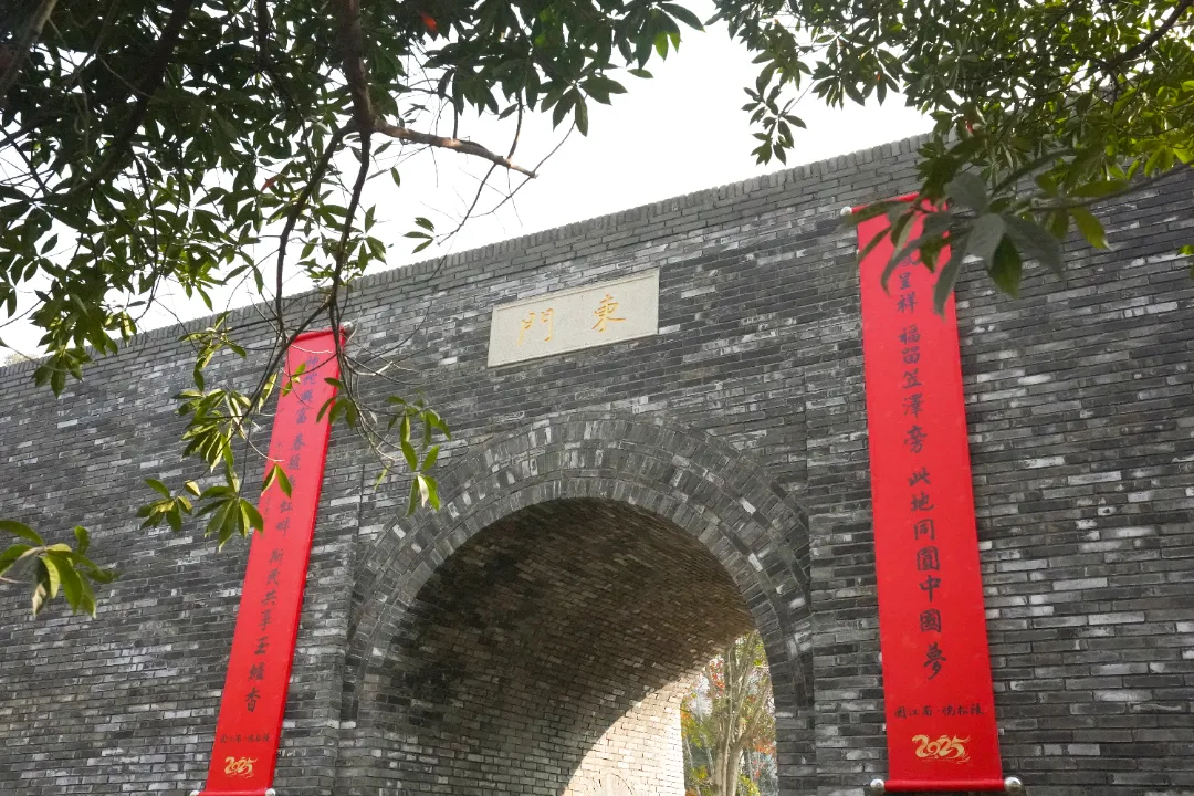 曾经的吴江城墙遗址,如今成为青年开展历史文化研学的重要场所。城墙上的展板详细记述了松陵古镇的防御历史,青年志愿者在此担任讲解员,讲述城墙背后的故事。