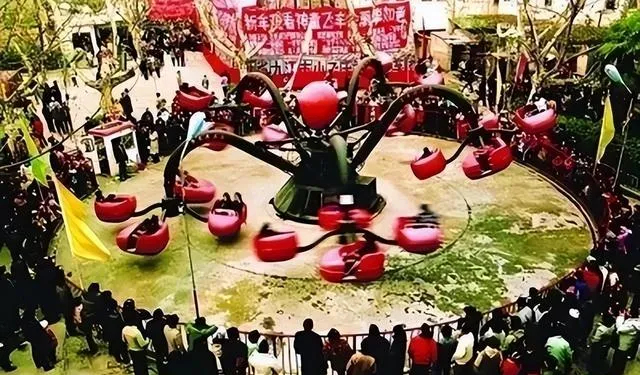 这个像大章鱼的旋转机,老南京人都坐过,红色座舱一圈圈甩出去,风从耳边钻过,心里直痒,排队的人脑袋跟着转,轮到自己时护栏一掀,屁股刚坐稳就开动了,笑着叫着,谁也装不住,直到落地腿还软软的.