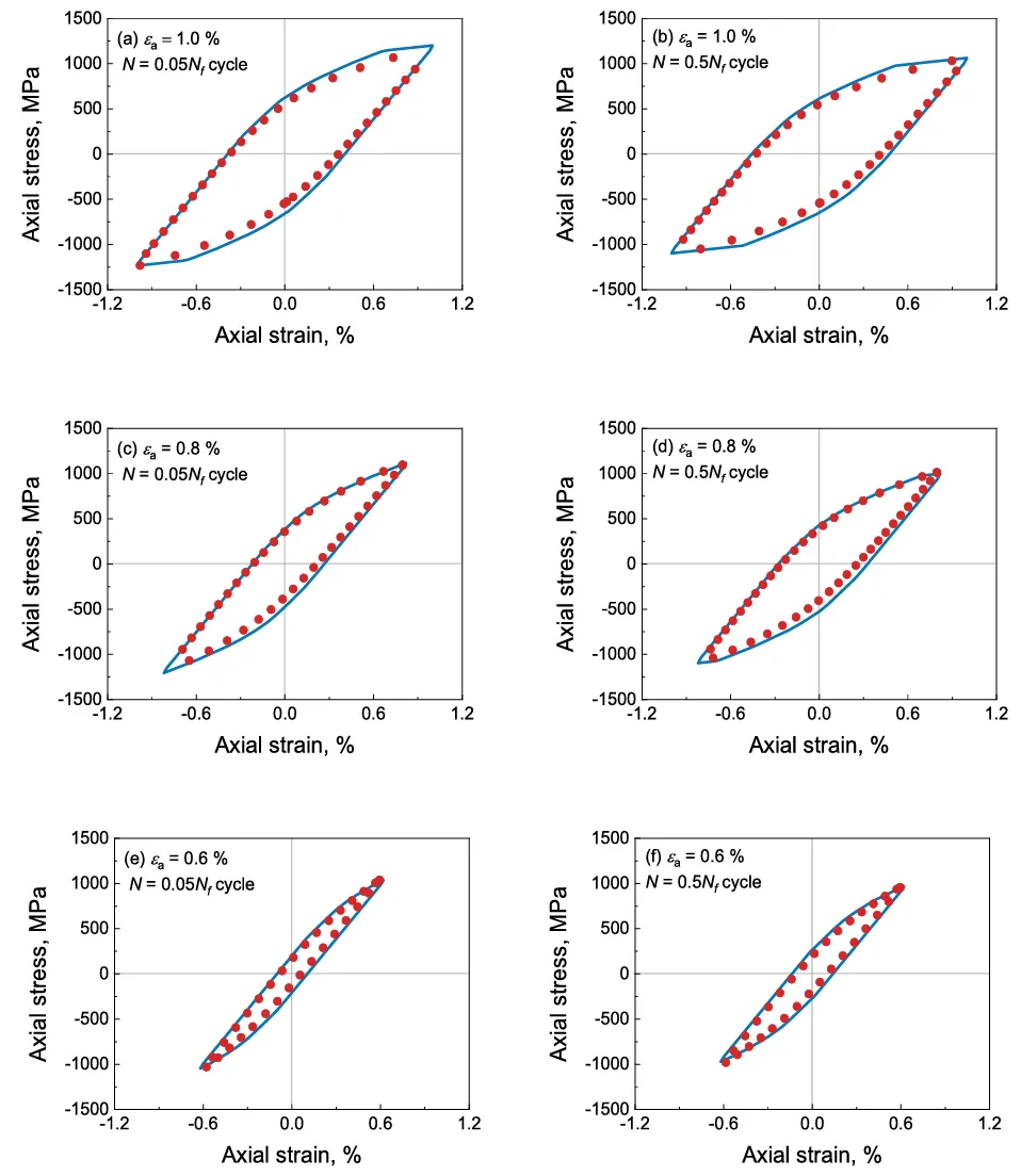 1.准确捕捉应力幅值演化、滞回环形状、损伤累积与残余奥氏体变化。