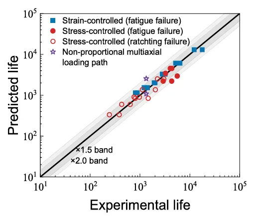 三种失效模式:疲劳失效、棘轮失效、混合失效,取决于应力水平和应变累积。