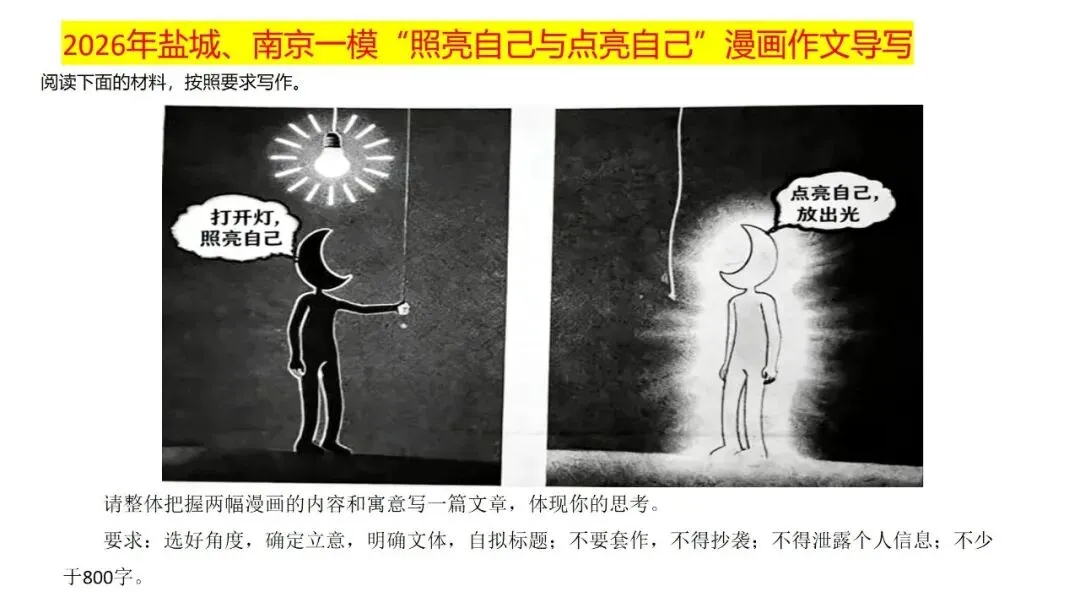 >2026届江苏省南京市、盐城市一模“照亮自己与点亮自己”漫画作文导写 课件